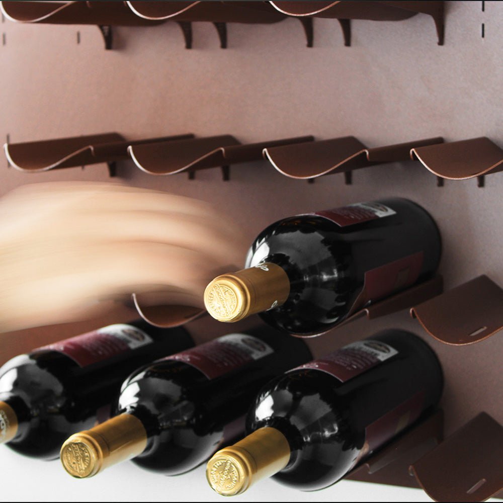 Le support mural Vintage casier – 18 bouteilles est une solution élégante et design pour exposer vos crus d’exception. Sa structure en métal, pensée pour les bouteilles de vin et de champagne à silhouette conique, présente chaque bouteille en angle pour une mise en valeur optimale. Facile à fixer au mur, il libère de l’espace au sol tout en créant un véritable mur de vin décoratif. Les ailettes amovibles permettent un nettoyage rapide, et son style minimaliste s’harmonise parfaitement avec tous les intérieurs, privés comme professionnels. Disponible en noir texturé ou corten, ce porte-bouteilles conjugue praticité, esthétique et robustesse.